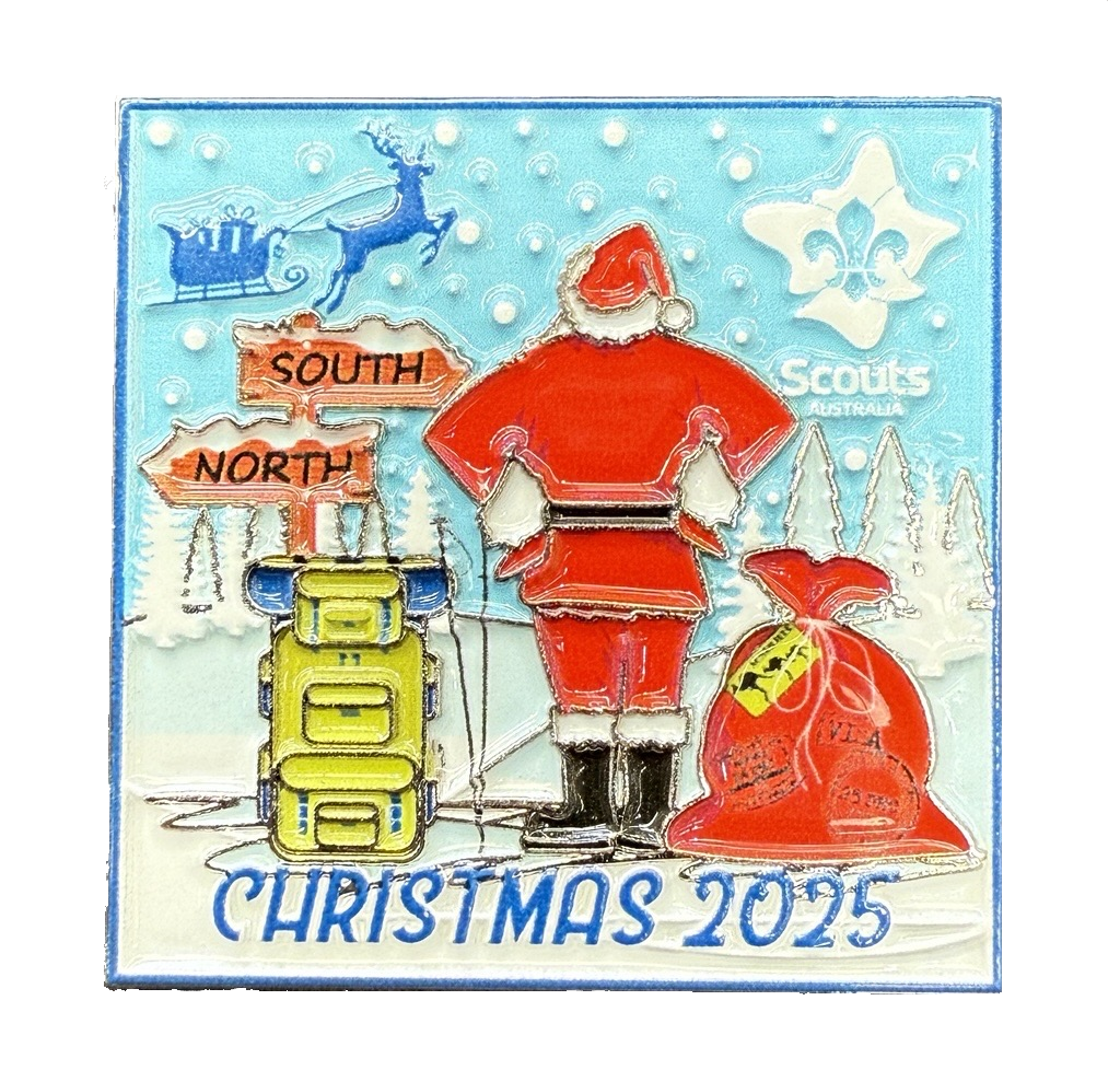 The 2025 Christmas Lapel pin is metal with full colour UV print. Great for swapping with friends, gifting or adding to your hat.